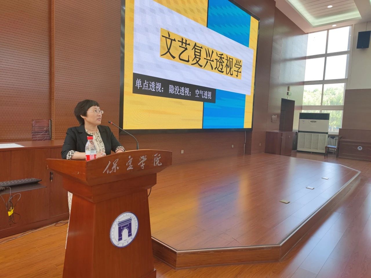 罗老师的讲座从二维平面透视应用于在西方中世纪的艺术作品讲起,相较于文艺复兴时期的透视学有了直观的对比,而对文艺复兴时期的线性透视、空间透视、空气透视的讲解,罗老师列举了大量经典的艺术作品,从发现到使用,讲述透视学在文艺复兴时期的重要地位,其发展与流传是经过艺术家们不断的深究学科,而日趋完善的。罗老师通过问答的讲座方式,让同学们知晓透视学对当下生活的影响,以及学科知识对于专业技术的重要意义。我校美术与设计学院师生和部分驻保高校教师计80余人参加了此次活动。
