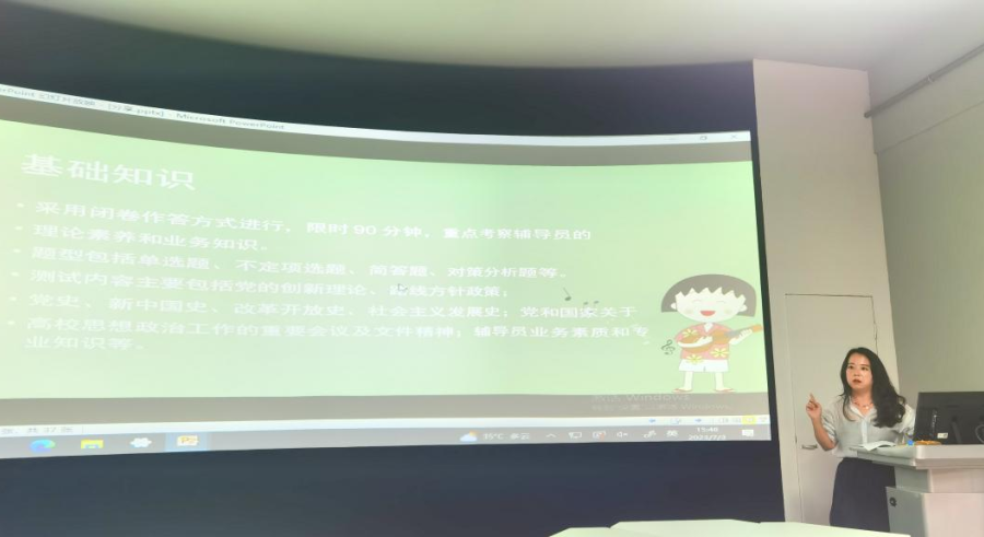 2019级辅导员李帅分享了大学生职业生涯规划指导心得,从组织满意度与个人满意度剖析如何指导毕业生找到适合的工作岗位;2020级辅导员赵杨对以“漫写红色”社会实践团队为例,针对社会实践带队经验及注意事项进行分享,尤其提醒大家密切关注暑期社会实践学生人身安全;2021级辅导员刘天宇以谈心谈话为切入点,分享如何通过一对一谈话优化学生干部培养、塑造人格魅力、做好班级管理。努力打造一支迎难而上,不畏泥泞,响应积极,落到实处的学生队伍;2022级辅导员王桐桐从比赛的五大模块——基础知识、班情熟知、主题班会、案例研讨和心得体会,分享参加河北省辅导员职业技能大赛的备赛技巧与参赛经验。