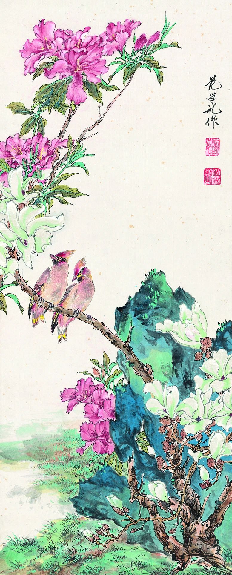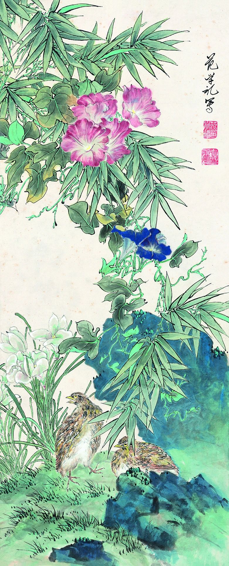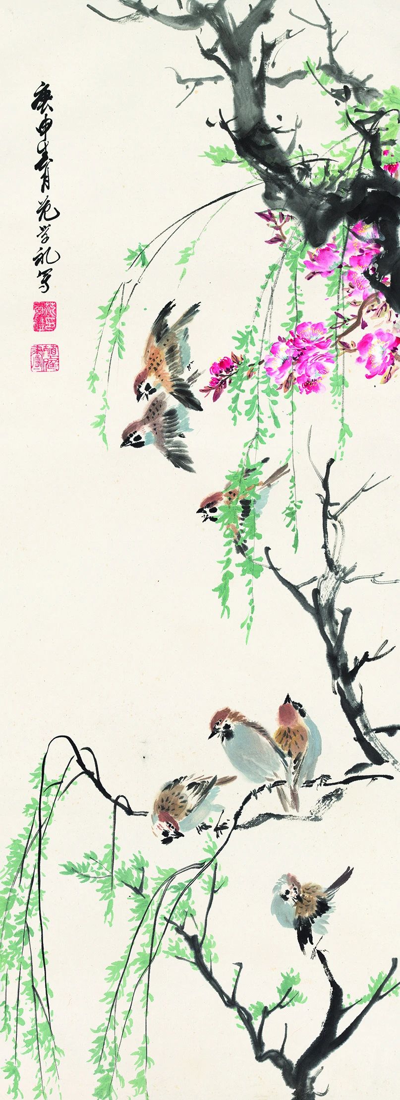 众所周知,范老先生师从于北京著名花鸟画大师汪慎生。汪慎生大师早年在上海以炭画肖像谋生,后师法清代扬州画派华喦,主擅小写意花鸟,自学成才后在北京以课徒、卖画为业,与陈半丁、王雪涛等齐名,与张大千交厚。范老先生在1933年考入北京辅仁大学教育学院美术系专修科时,汪慎生大师正在此执教,范老先生成为他的入室弟子。毕业后,范老先生到古物陈列所继续深造,相当于研究生,指导教师有齐白石、张大千、黄宾虹、于非闇等。古物陈列所是建立于1914年的文物研究和陈列机构,位于今故宫博物院的前半部分,在那里,使他有机会饱览了历代先贤的名作,对他日后的绘画发展大有裨益。