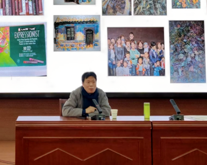 在讲座中,杨志高展示了自己的系列作品,让现场师生直观感受到油性色粉在静物、风景、人物等题材表现中的独特魅力。