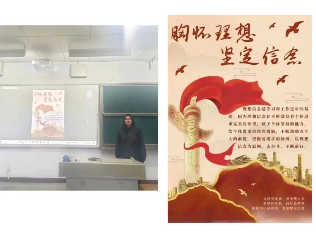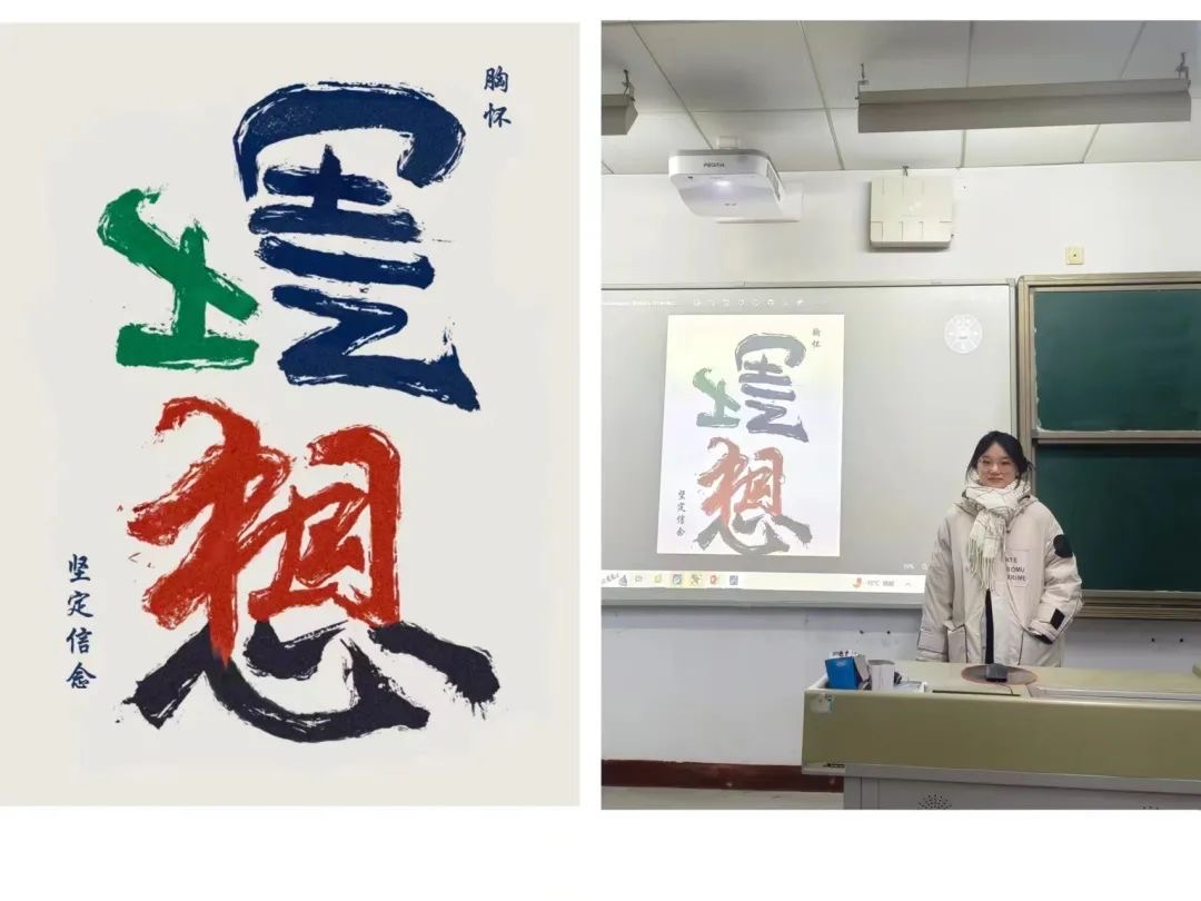 此次展板设计活动共11名同学参与,从中选取了2名同学代表进行作品创作讲解,让同学们深刻了解到坚定信念的重要性。以下是2名同学的作品: