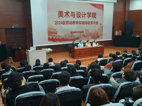 2025年3月10日上午,我院在D105报告厅召开2024级绘画、数字媒体艺术、工艺美术、视觉传达设计专业劳动教育实践周动员大会,学院领导班子、2024级辅导员老师及相关学生参会。