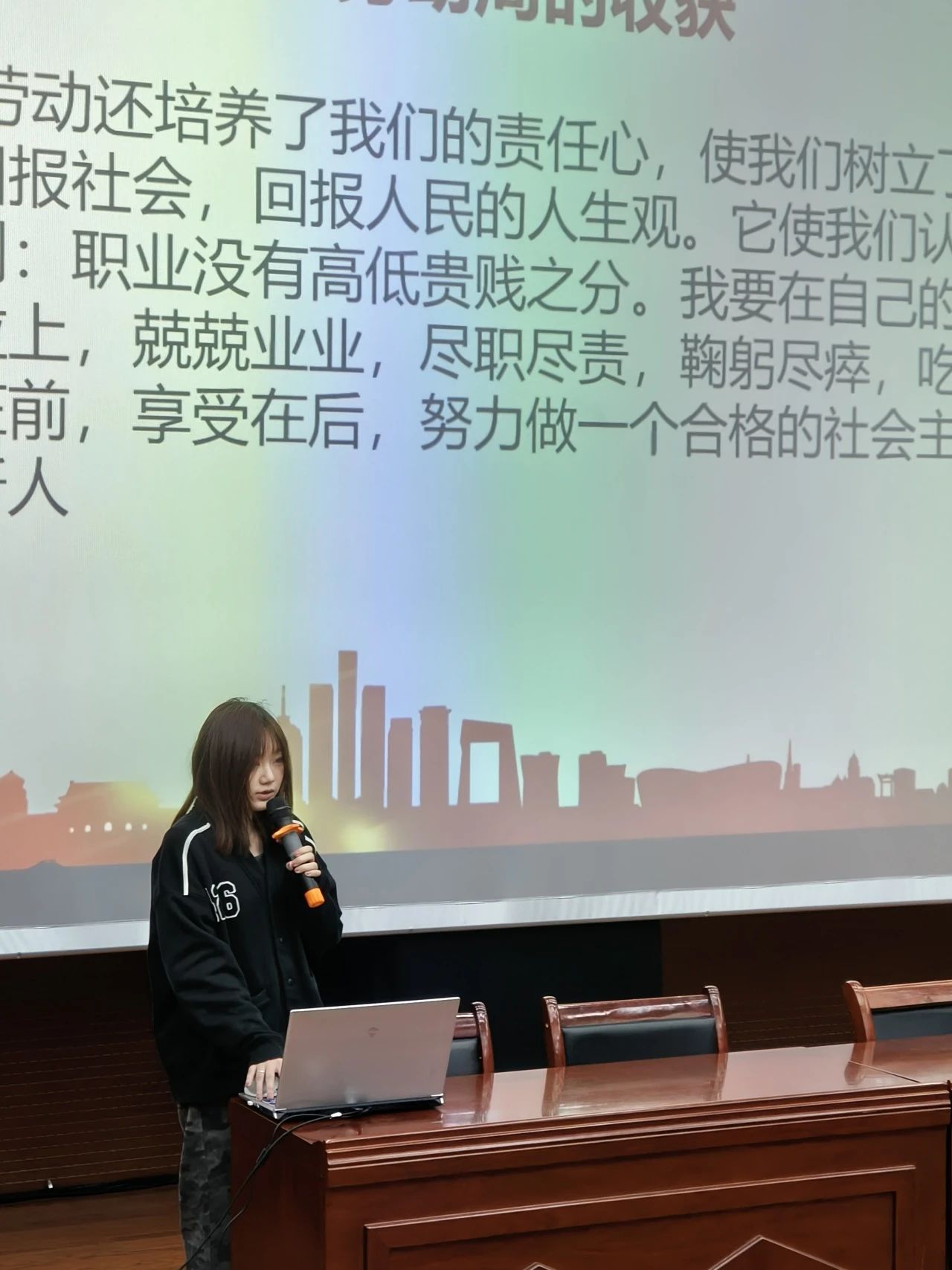 辅导员张莹老师强调,劳动是实现个人价值的重要途径,她鼓励同学们尊劳崇勤,将劳动精神融入学习生活中,不断提升自我,共创美好未来。