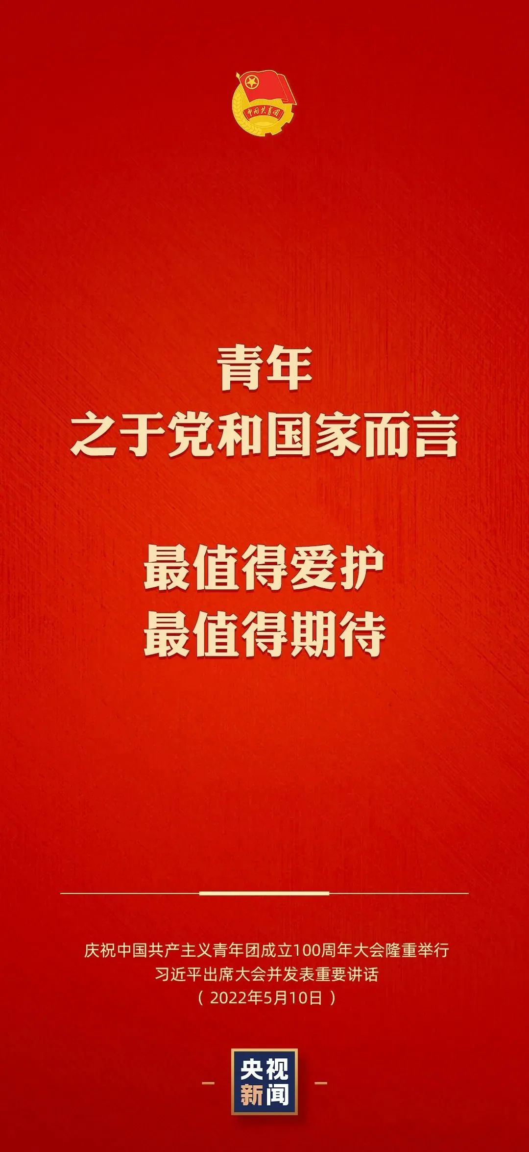 今天(10日)上午,庆祝中国共产主义青年团成立100周年大会在北京人民大会堂隆重举行。中共中央总书记、国家主席、中央军委主席习近平出席大会并发表重要讲话。
