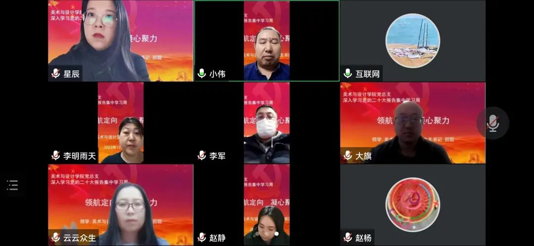 旗帜引领方向,无愧历史担当。10月17日晚,美术与设计学院党总支开展党的二十大报告学习活动,班子成员、师生支部委员、教研室主任参加学习,党总支书记田聪做《领航定向 凝心聚力》领学。