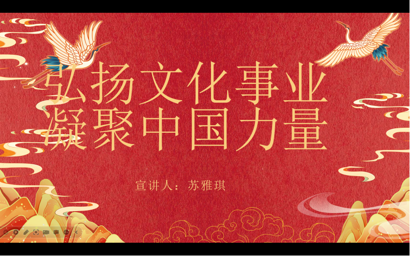 此次团课活动由美术与设计学院团总支组织部部员苏雅琪进行宣讲,首先向同学们讲解了中华文明的含义以及繁荣文化事业的重要性,让同学们了解到繁荣文化事业的重要性。
