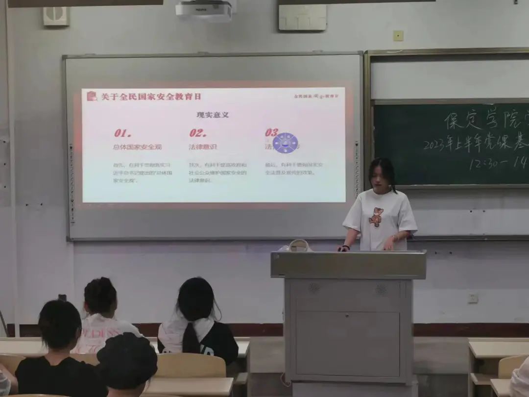 此次团课由美术与设计学院团总支李欣然、张艺萌进行宣讲,首先向同学们讲解了什么是全民国家安全日,关于国家安全及保密意识的重要意义。