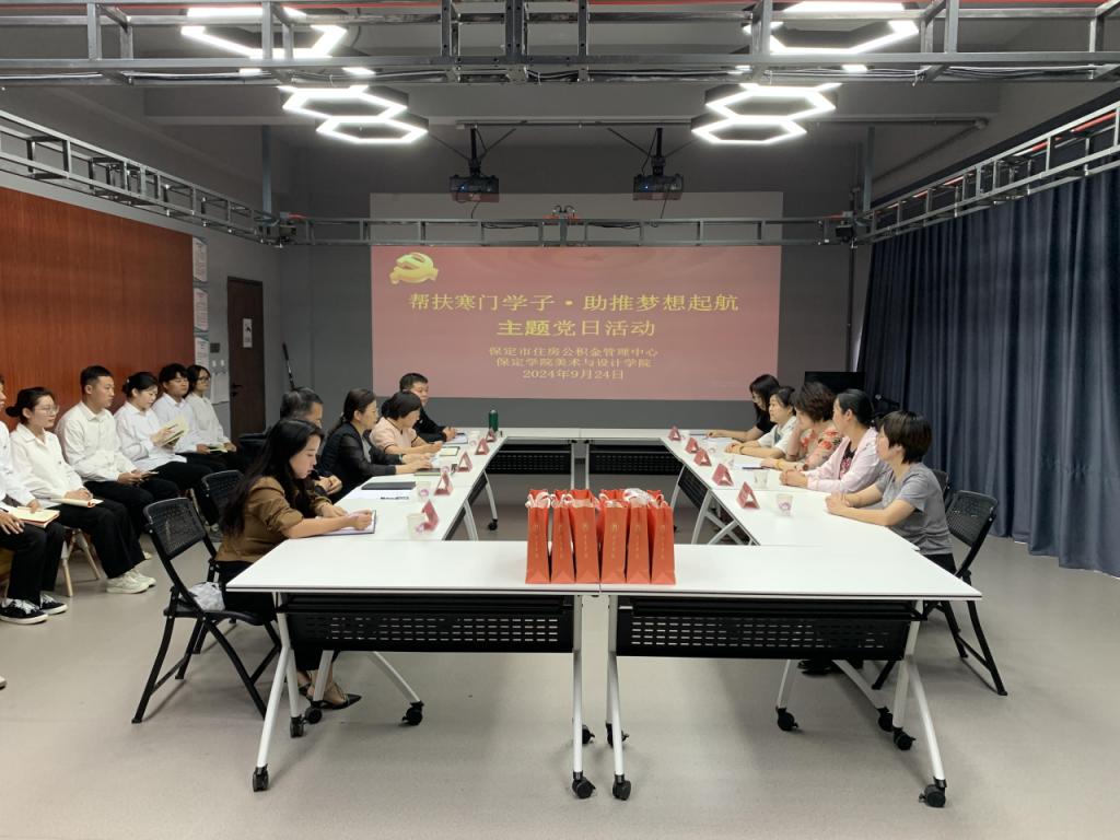 为深入学习宣传贯彻党的二十届三中全会精神和习近平总书记关于青年工作重要论述,9月24日下午,保定市住房公积金管理中心机关党委根据市直工委《关于进一步开展好2024年“党员活动日”活动的通知》安排,联合我院党总支开展“帮扶寒门学子·助推梦想起航”主题党日活动。我院党总支书记田聪、院长金星、党总支副书记寇荣、全体辅导员老师、受助学生和学生党员代表参加活动。